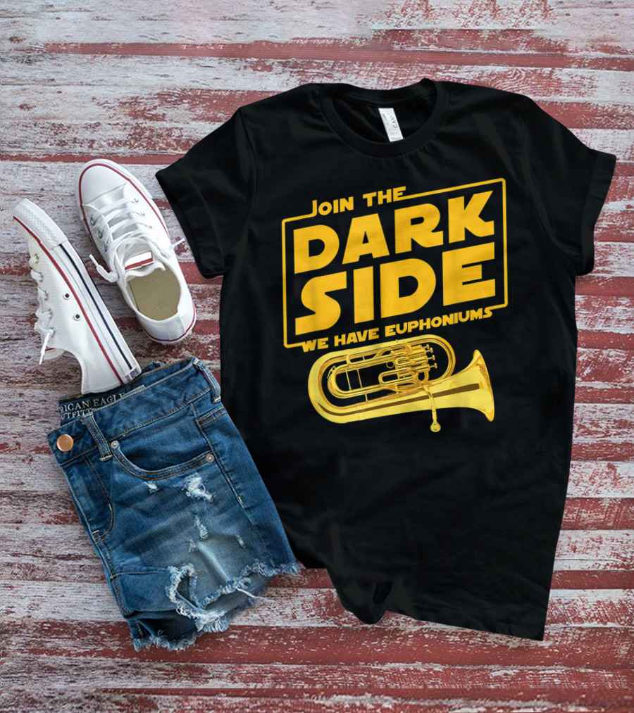 The Join the Dark Side We Have Euphoniums Shirt offers a regular fit. Made from 100% ring-spun cotton that is pre-shrunk to help maintain size and shape after washing. Features reinforced construction details for durability. Available in U.S. standard sizes S-5XL to accommodate various body types.