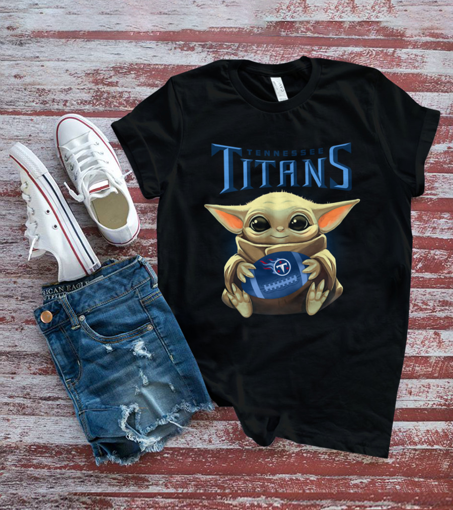 Tennessee Titans Baby Yoda Holding Football T-Shirt