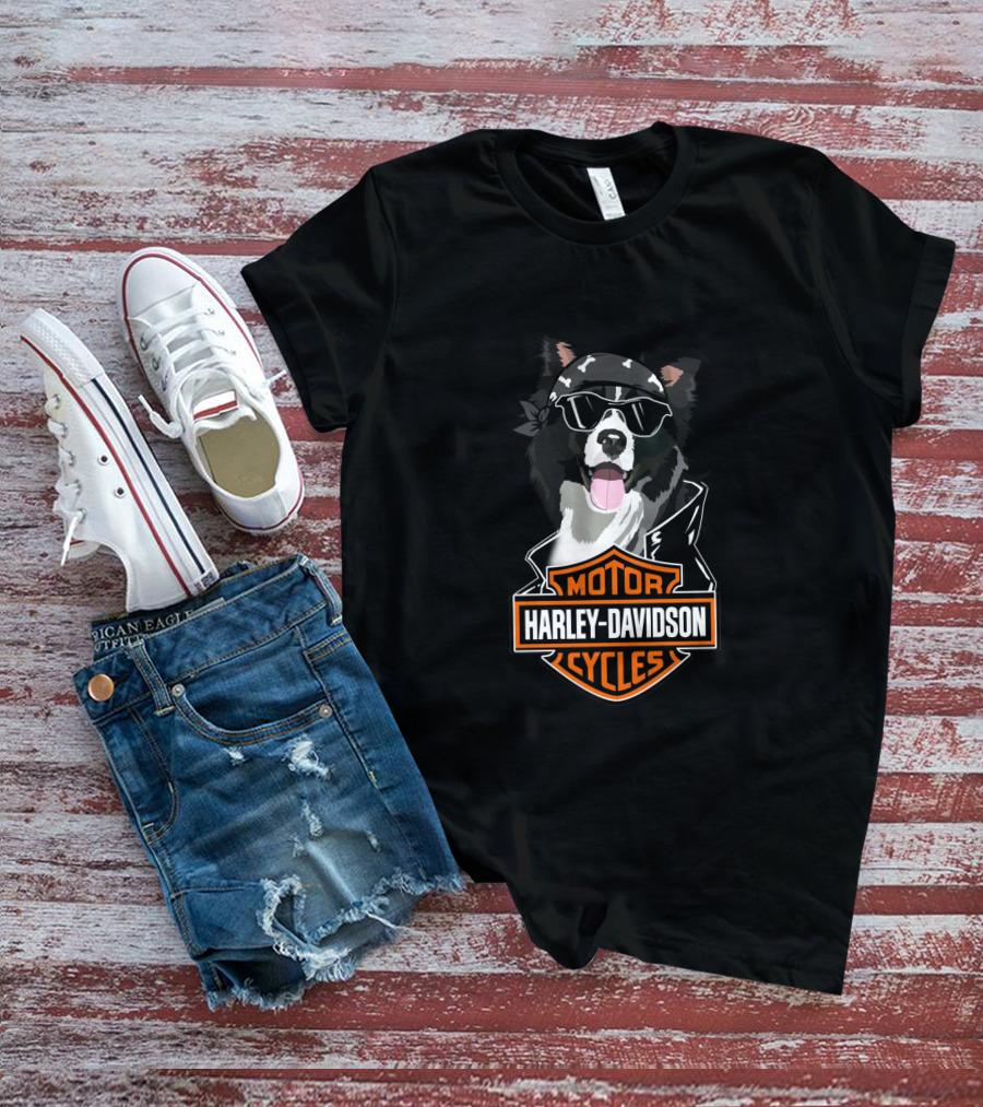 Border Collie Harley Davidson Motorcycles T-Shirt