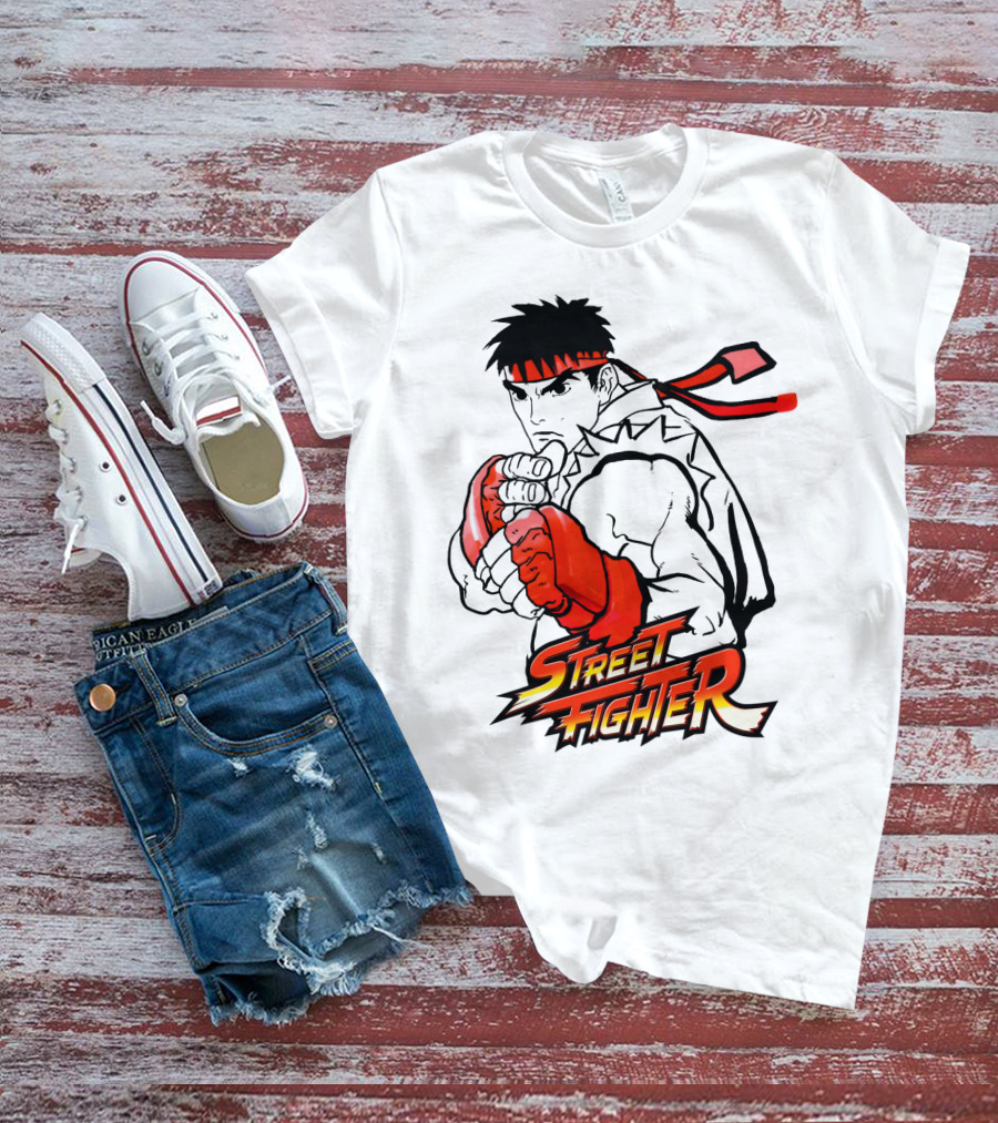 The Street Fighter Ryu Red Gloves and Bandana Fighting Pose Shirt offers a regular fit. Made from 100% ring-spun cotton that is pre-shrunk to help maintain size and shape after washing. Features reinforced construction details for durability. Available in U.S. standard sizes S-5XL to accommodate various body types.