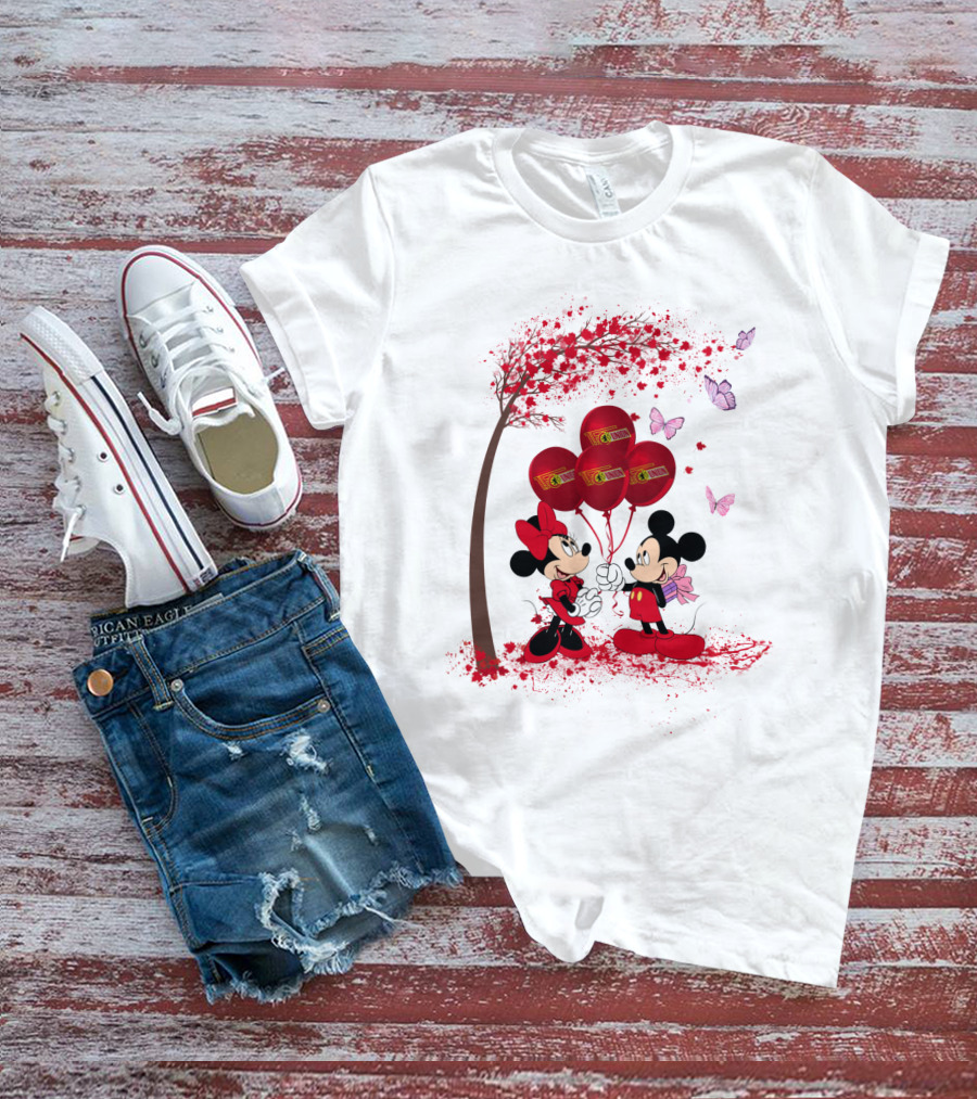 Minnie And Mickey Mouse Holding 1 FC Union Berlin Balloons With Tree And Butterflies T-Shirt