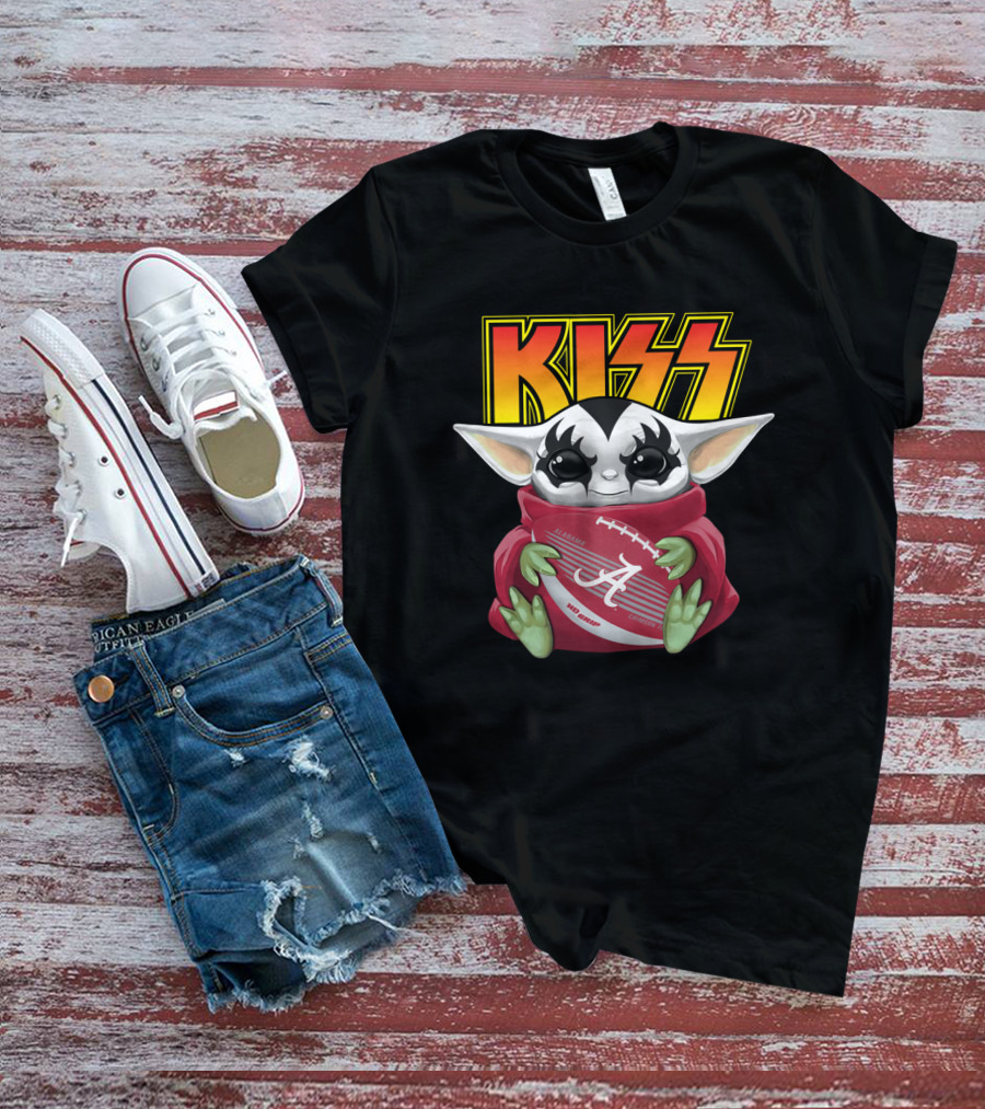 KISS Gene Simmons Baby Yoda Holding Alabama Crimson Tide Football T-Shirt