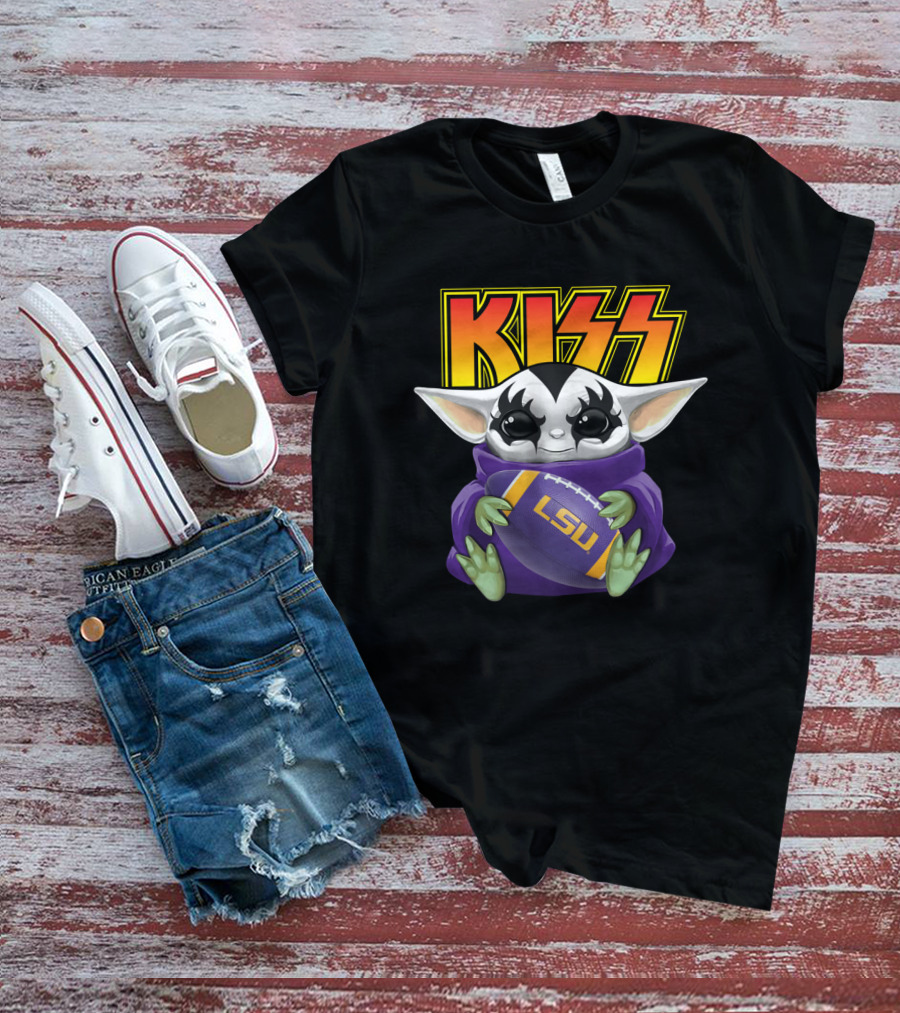 KISS Baby Yoda Holding LSU Tigers Football T-Shirt