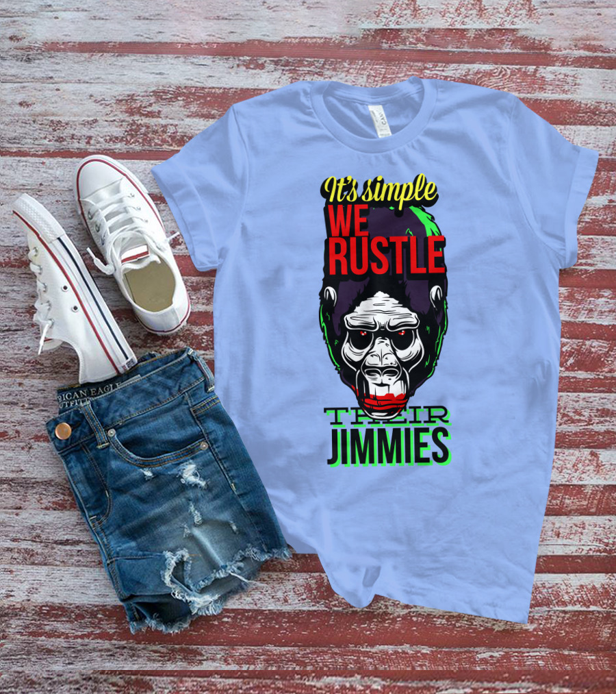 The It's Simple We Rustle Their Jimmies Shirt offers a regular fit. Made from 100% ring-spun cotton that is pre-shrunk to help maintain size and shape after washing. Features reinforced construction details for durability. Available in U.S. standard sizes S-5XL to accommodate various body types.