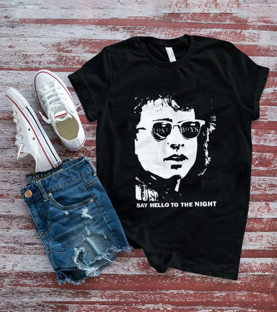 The Lost Boys Say Hello to the Night Shirt offers a regular fit. Made from 100% ring-spun cotton that is pre-shrunk to help maintain size and shape after washing. Features reinforced construction details for durability. Available in U.S. standard sizes S-5XL to accommodate various body types.