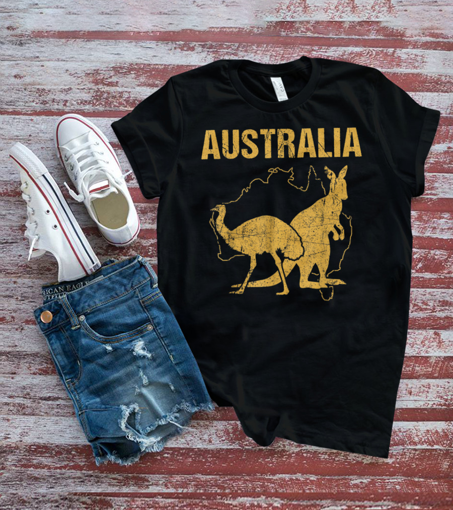 The Australia Kangaroo and Emu Silhouette Map Shirt offers a regular fit. Made from 100% ring-spun cotton that is pre-shrunk to help maintain size and shape after washing. Features reinforced construction details for durability. Available in U.S. standard sizes S-5XL to accommodate various body types.