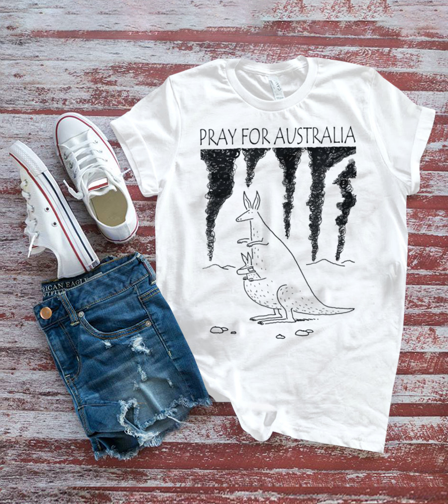 Pray For Australia Kangaroo Mother And Baby With Dark Smoke T-Shirt