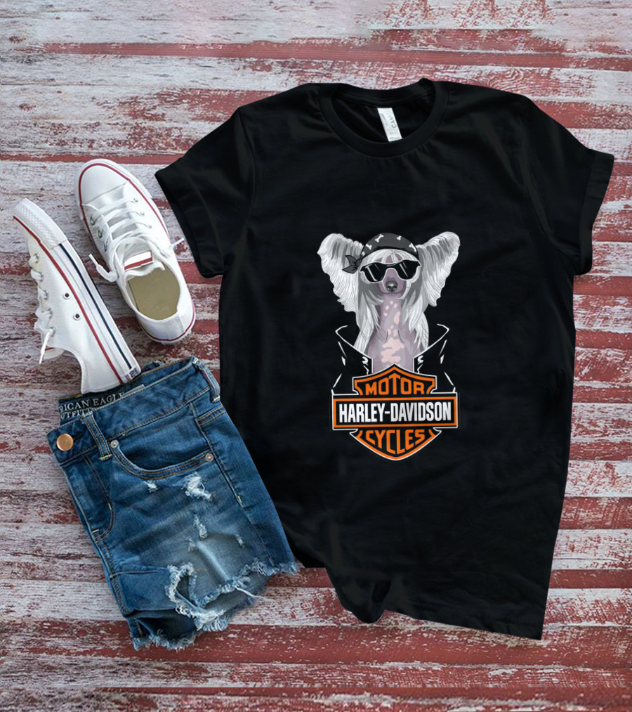 Chinese Crested Harley Davidson Motorcycles T-Shirt