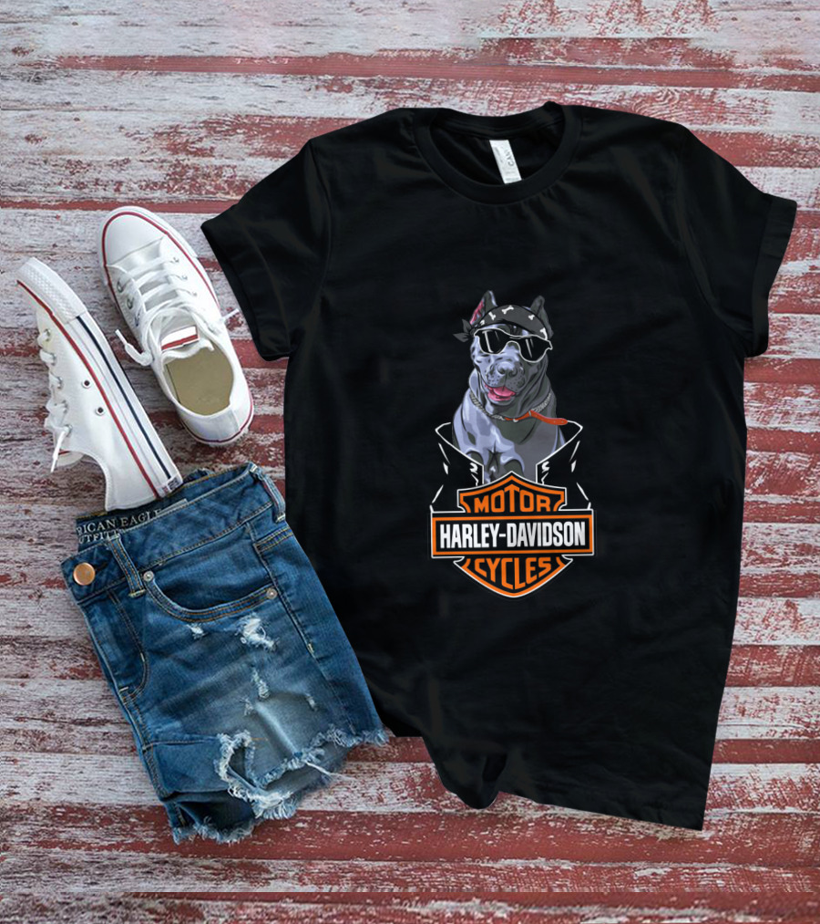 Harley Davidson Motor Cycles Cane Corso Motorcycle Dog Bandana Sunglasses T-Shirt
