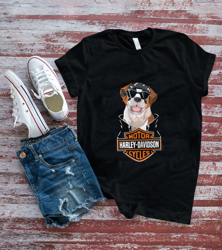 St Bernards Harley Davidson Motorcycles Logo Dog Bandana Sunglasses T-Shirt