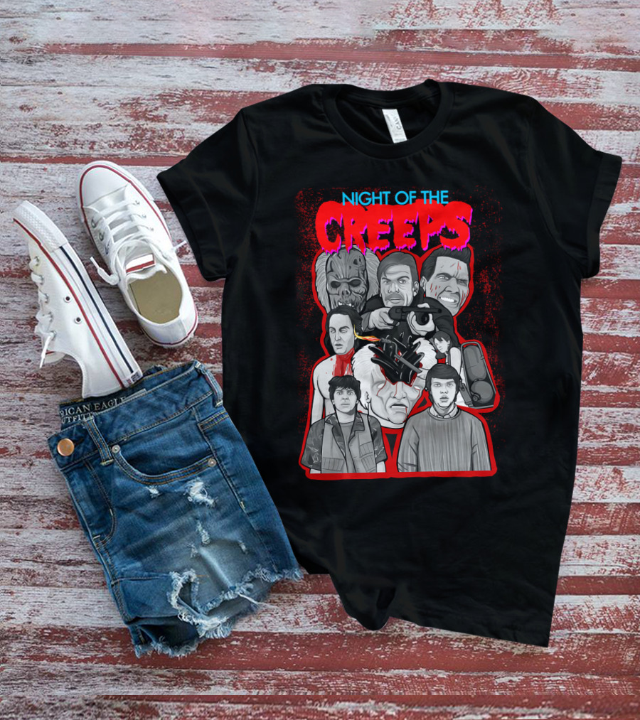 The Night of The Creeps Horror Movie Characters and Weaponry Shirt offers a regular fit. Made from 100% ring-spun cotton that is pre-shrunk to help maintain size and shape after washing. Features reinforced construction details for durability. Available in U.S. standard sizes S-5XL to accommodate various body types.