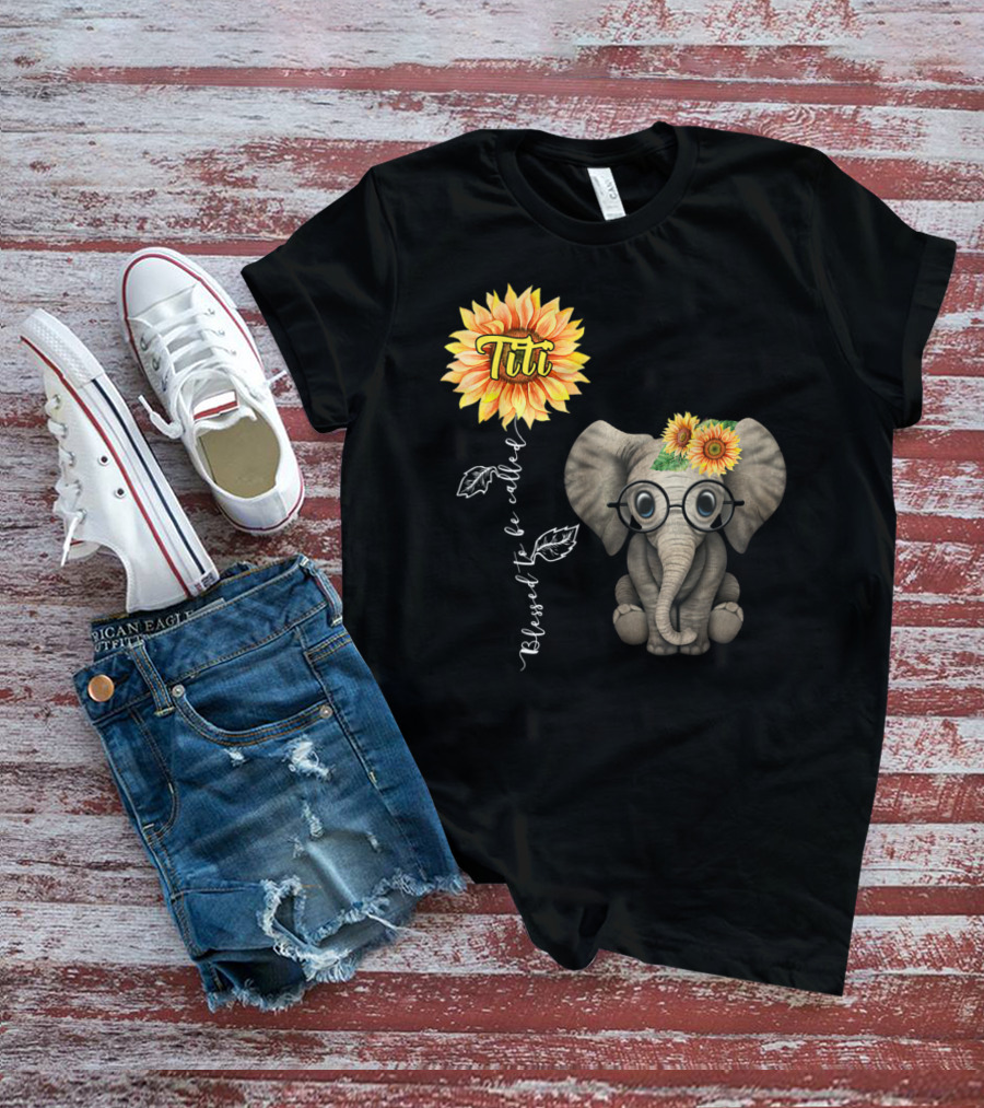 Blessed To Be Called Titi Sunflower Glasses Elephant Aunt T-Shirt