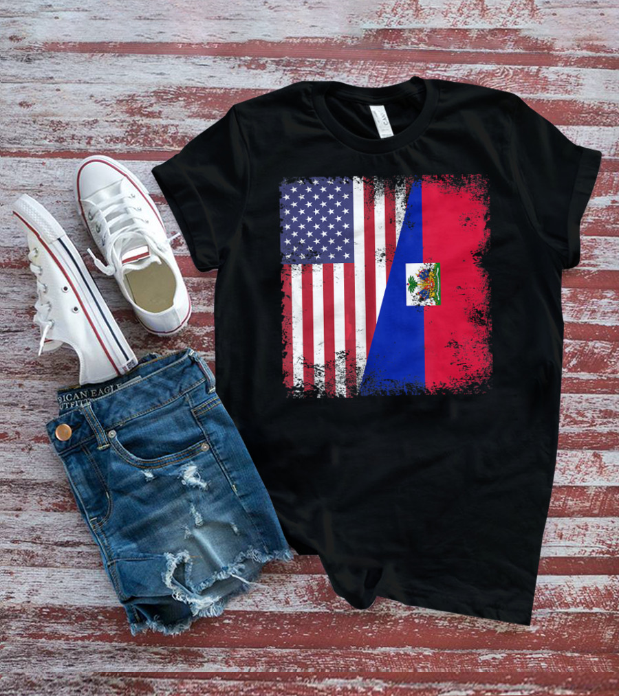 The Half Haitian Flag Vintage Haiti U USA Grunge Style Flag Fusion Shirt offers a regular fit. Made from 100% ring-spun cotton that is pre-shrunk to help maintain size and shape after washing. Features reinforced construction details for durability. Available in U.S. standard sizes S-5XL to accommodate various body types.