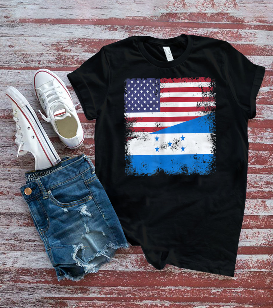 The Half Honduran Half American Flag Vintage Hon Shirt offers a regular fit. Made from 100% ring-spun cotton that is pre-shrunk to help maintain size and shape after washing. Features reinforced construction details for durability. Available in U.S. standard sizes S-5XL to accommodate various body types.