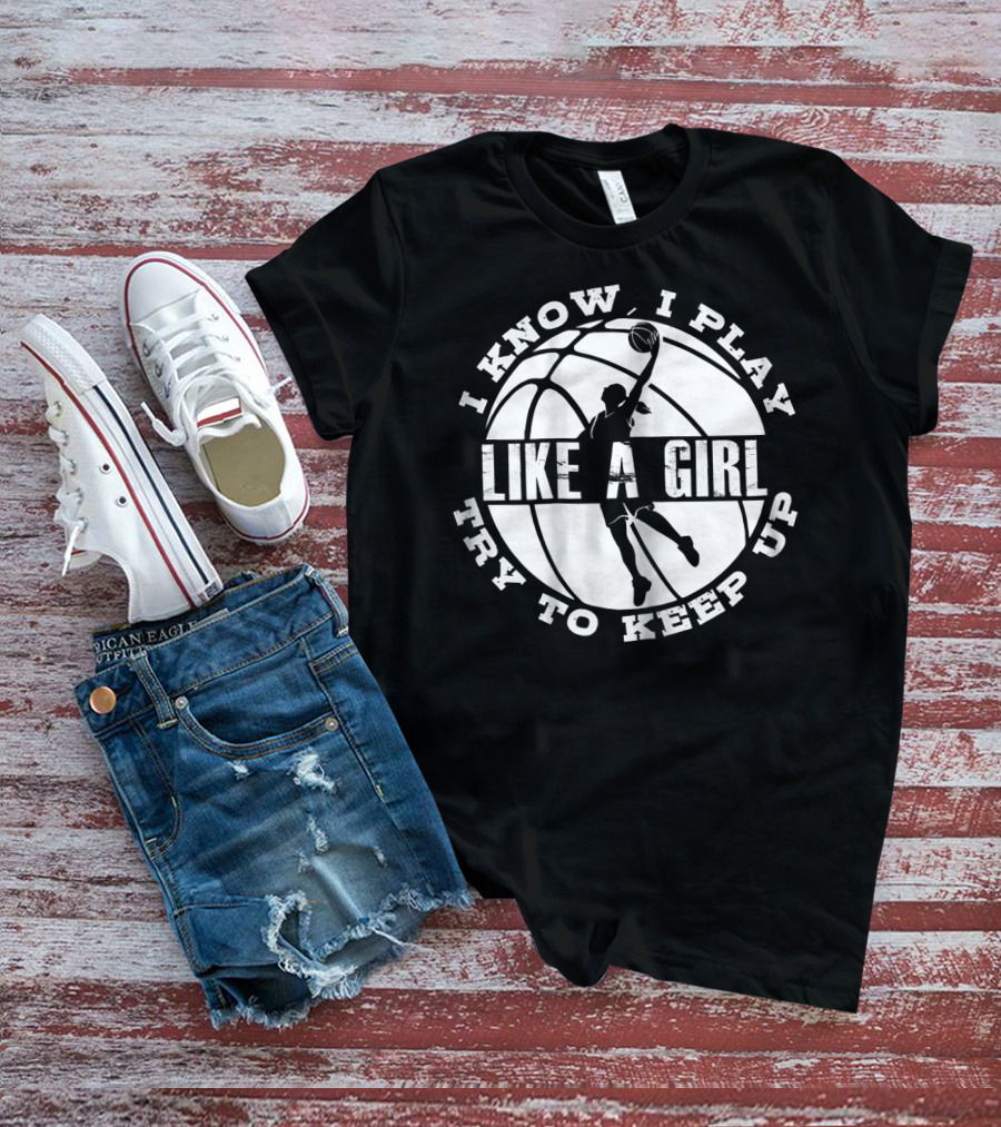 I Know I Play Like A Girl Try To Keep Up Basketball Player Dunk T-Shirt