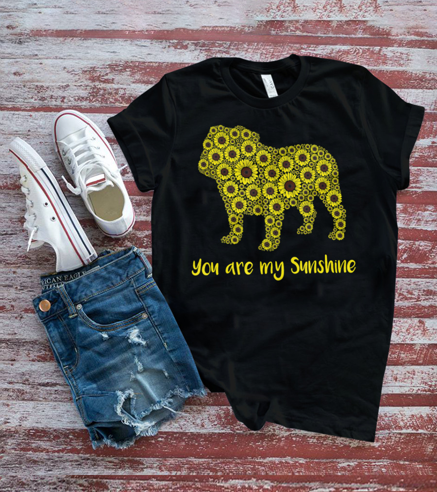 You Are My Sunshine Sunflower Bulldog Silhouette Mom Mam T-Shirt