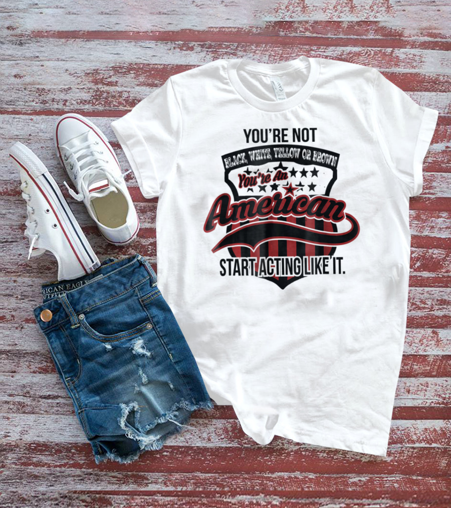 You're Not Black White Yellow Or Brown You're An American Start Acting Like It Patriotic Shield T-Shirt