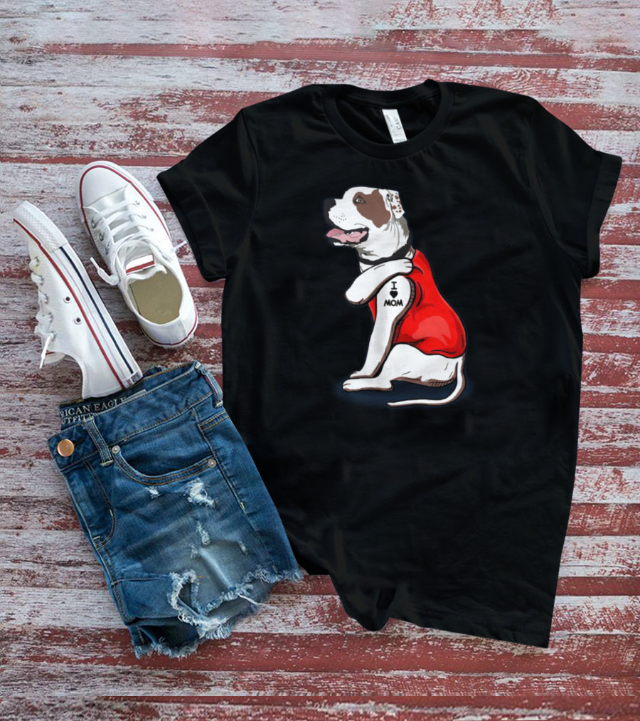 American Bulldog Wearing I Love Mom Tattoo Paw Sleeve T-Shirt