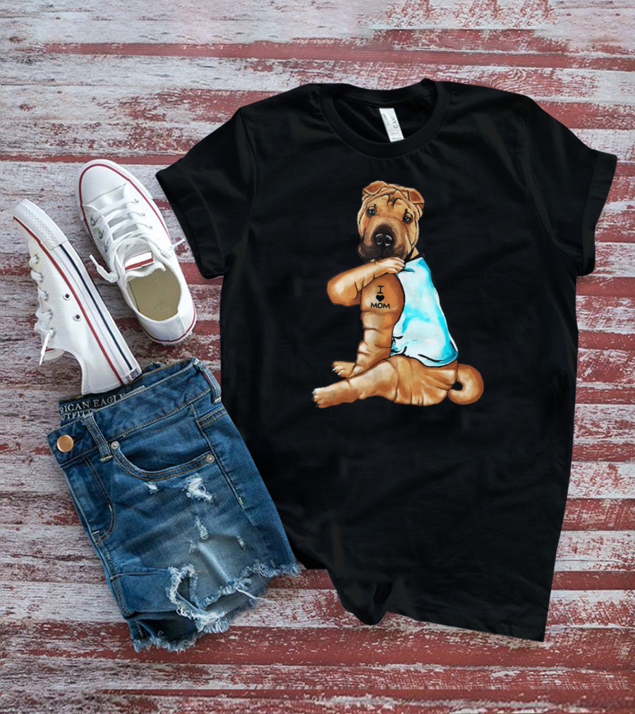 I Love Mom Funny Shar Pei Dog Tattoo T-Shirt