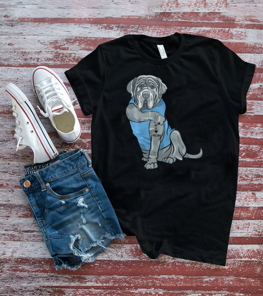 Neapolitan Mastiff I Love Mom Tattoo Dog Wearing Blue T-Shirt