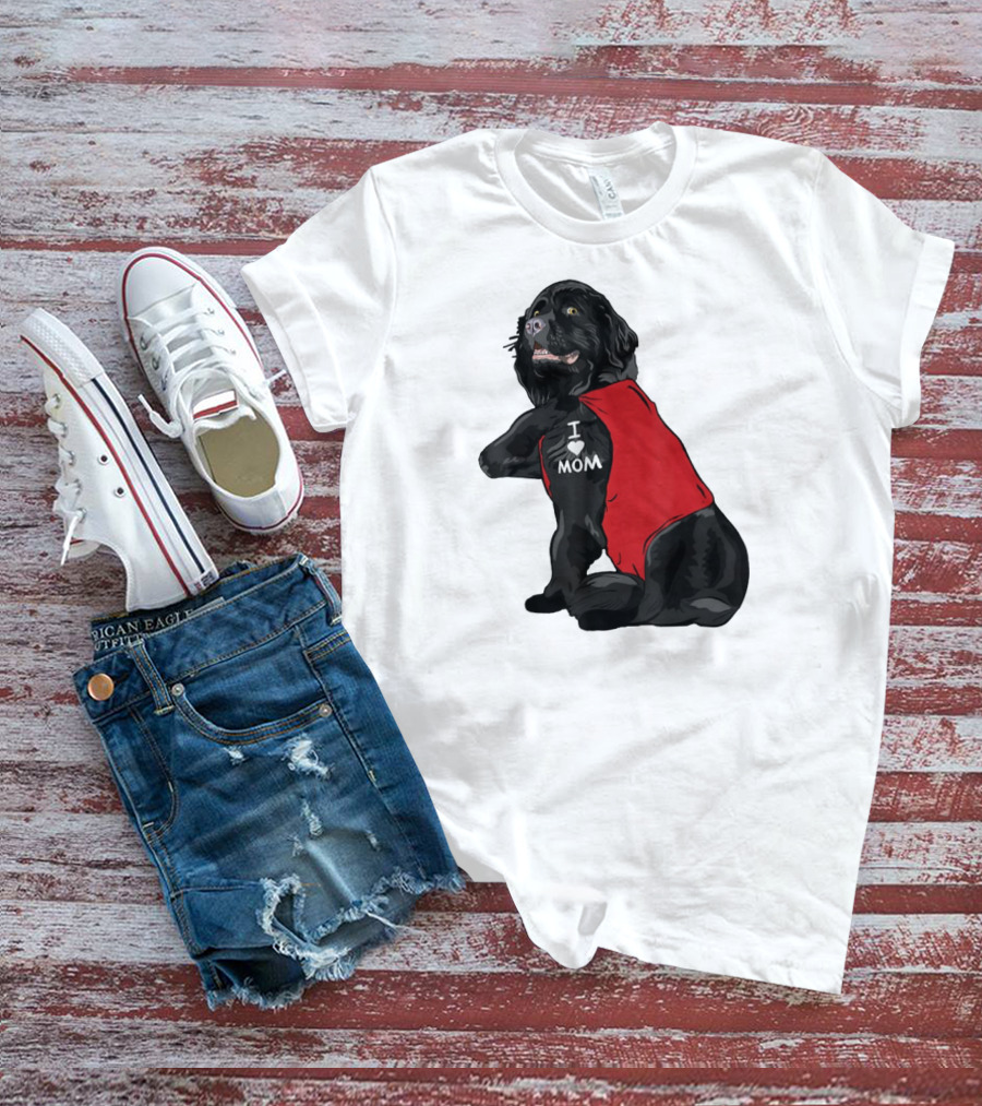 Newfoundland Dog I Love Mom Red Vest Tattoo T-Shirt