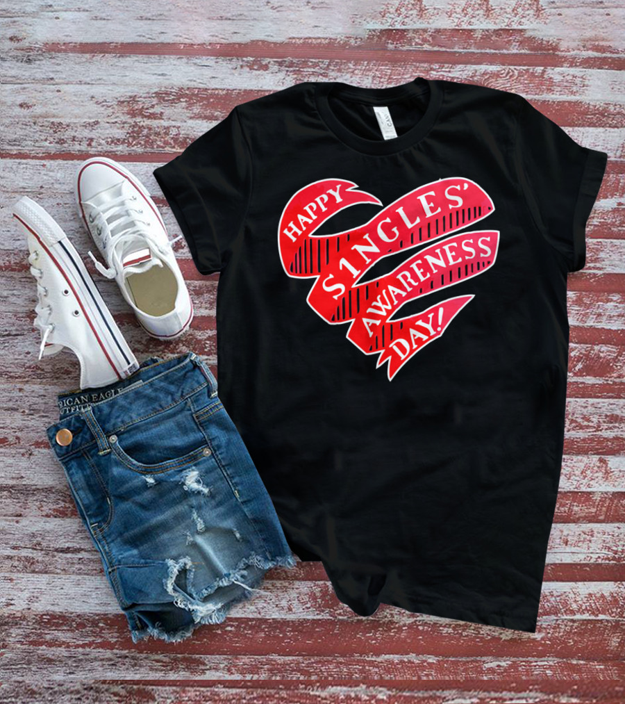 Happy Singles Awareness Day Red Ribbon Heart T-Shirt
