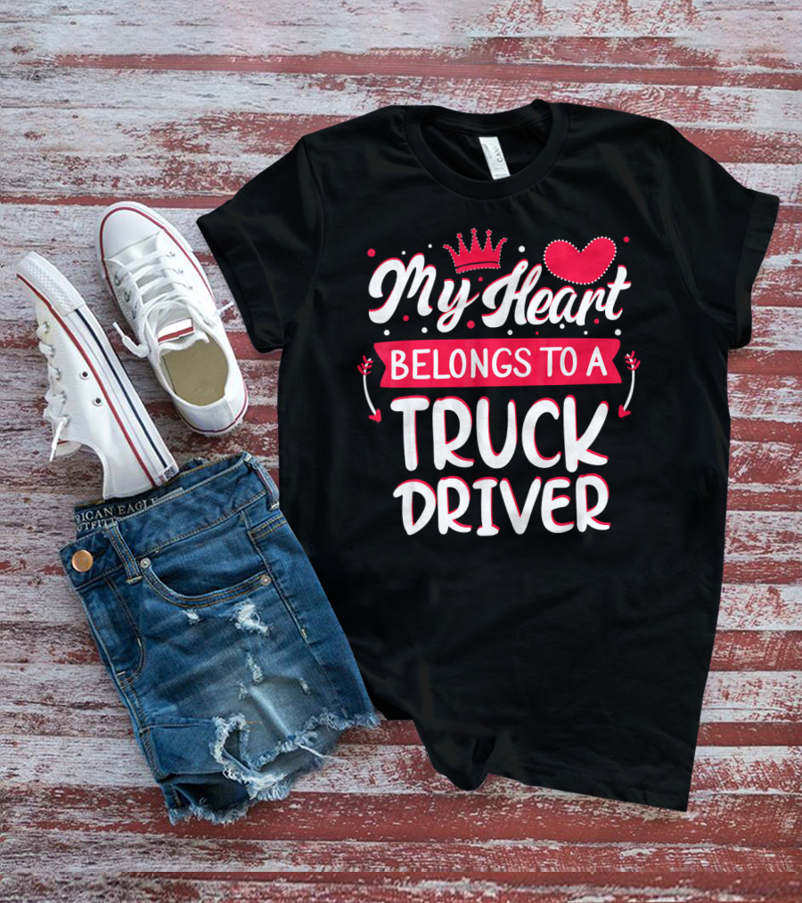 The My Heart Belongs to a Truck Driver Shirt offers a regular fit. Made from 100% ring-spun cotton that is pre-shrunk to help maintain size and shape after washing. Features reinforced construction details for durability. Available in U.S. standard sizes S-5XL to accommodate various body types.