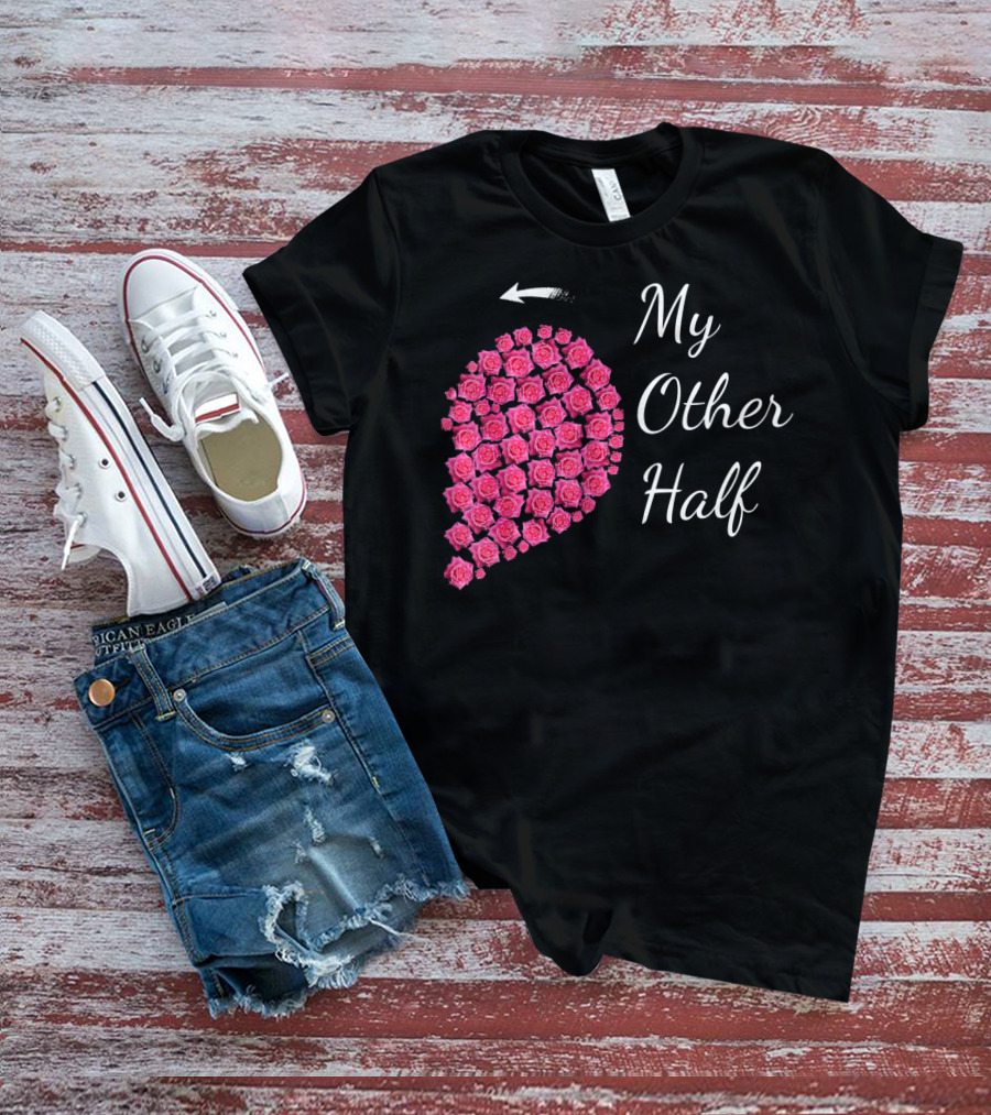 The My Other Half Pink Rose Half Heart Valentine Shirt offers a regular fit. Made from 100% ring-spun cotton that is pre-shrunk to help maintain size and shape after washing. Features reinforced construction details for durability. Available in U.S. standard sizes S-5XL to accommodate various body types.