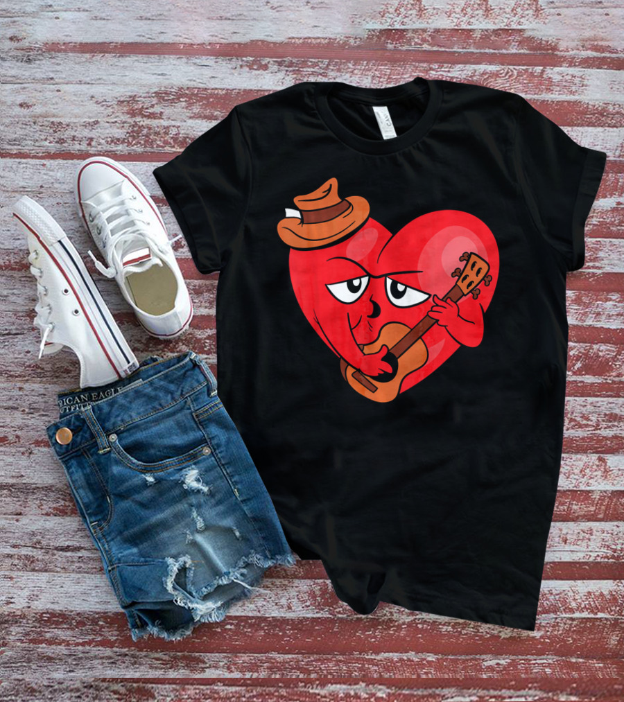Heart Playing Guitar With Cowboy Hat Valentine's Day T-Shirt