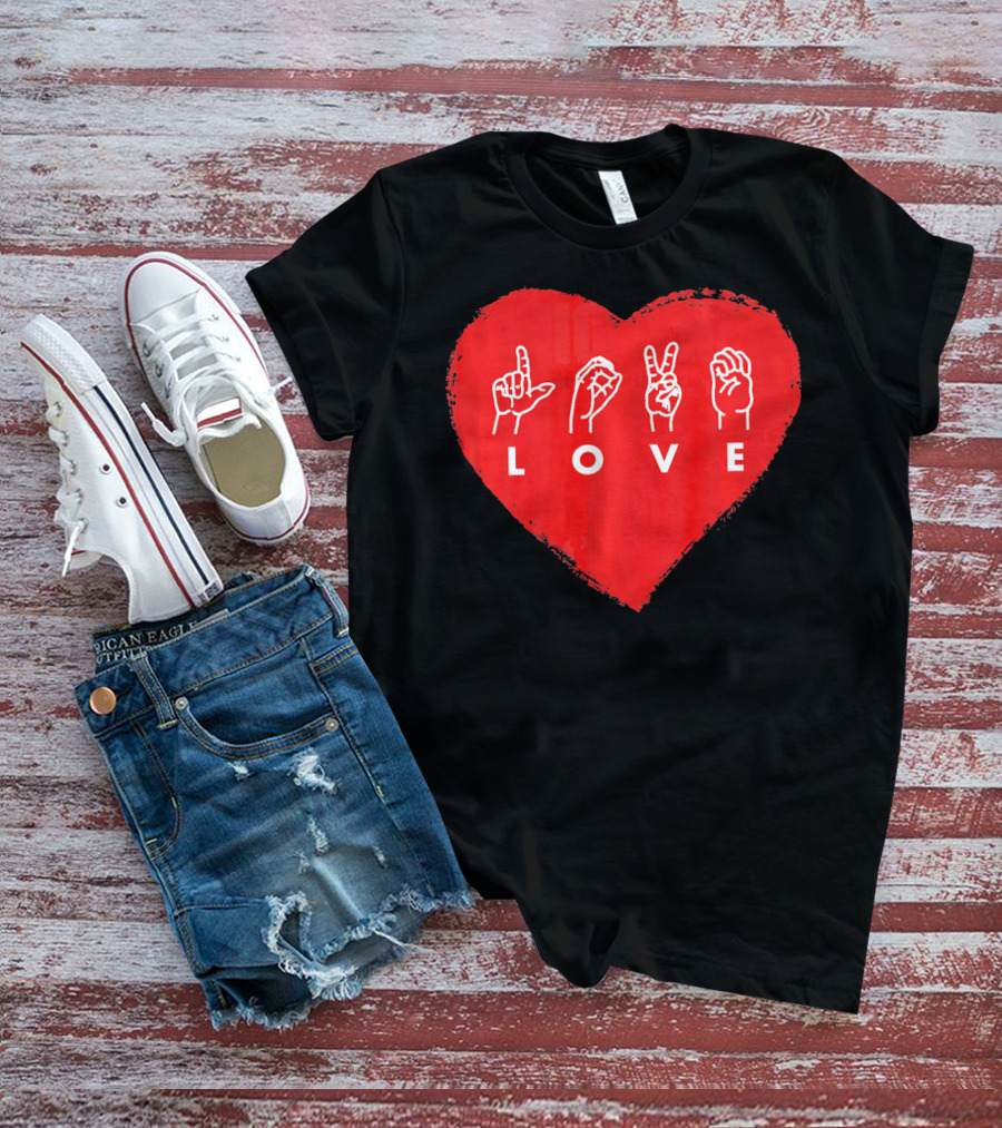 Love Sign Language Heart Red Valentines Day T-Shirt