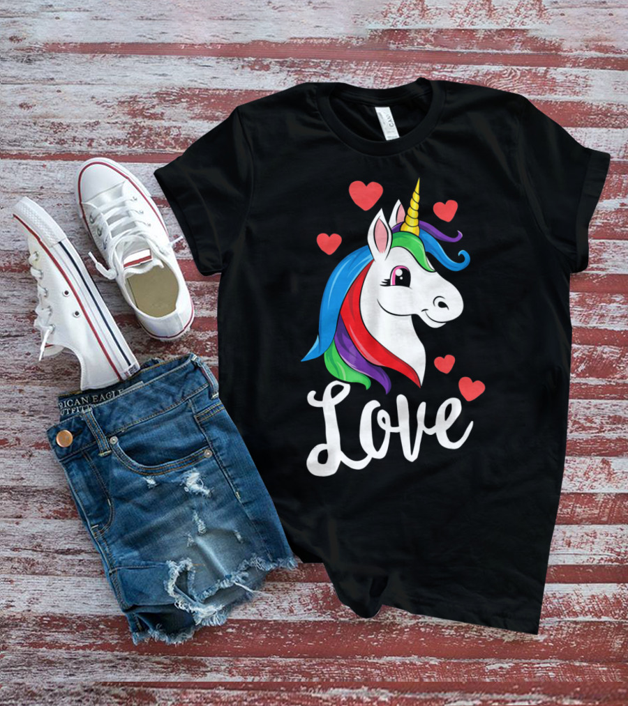 Love Unicorn With Hearts Valentines Day T-Shirt