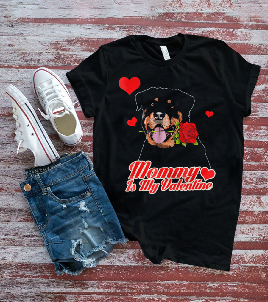 Mommy Is My Valentine Rottweiler Heart Rose T-Shirt