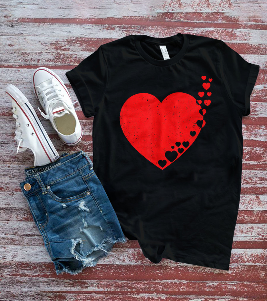 Big Heart Distressed Valentines Red Heart With Small Hearts Fluttering T-Shirt