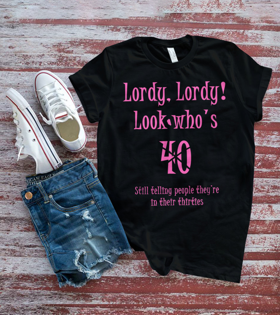 The Lordy Lordy Look Who's 40 Still Telling People They're in Their Thirties Shirt offers a regular fit. Made from 100% ring-spun cotton that is pre-shrunk to help maintain size and shape after washing. Features reinforced construction details for durability. Available in U.S. standard sizes S-5XL to accommodate various body types.