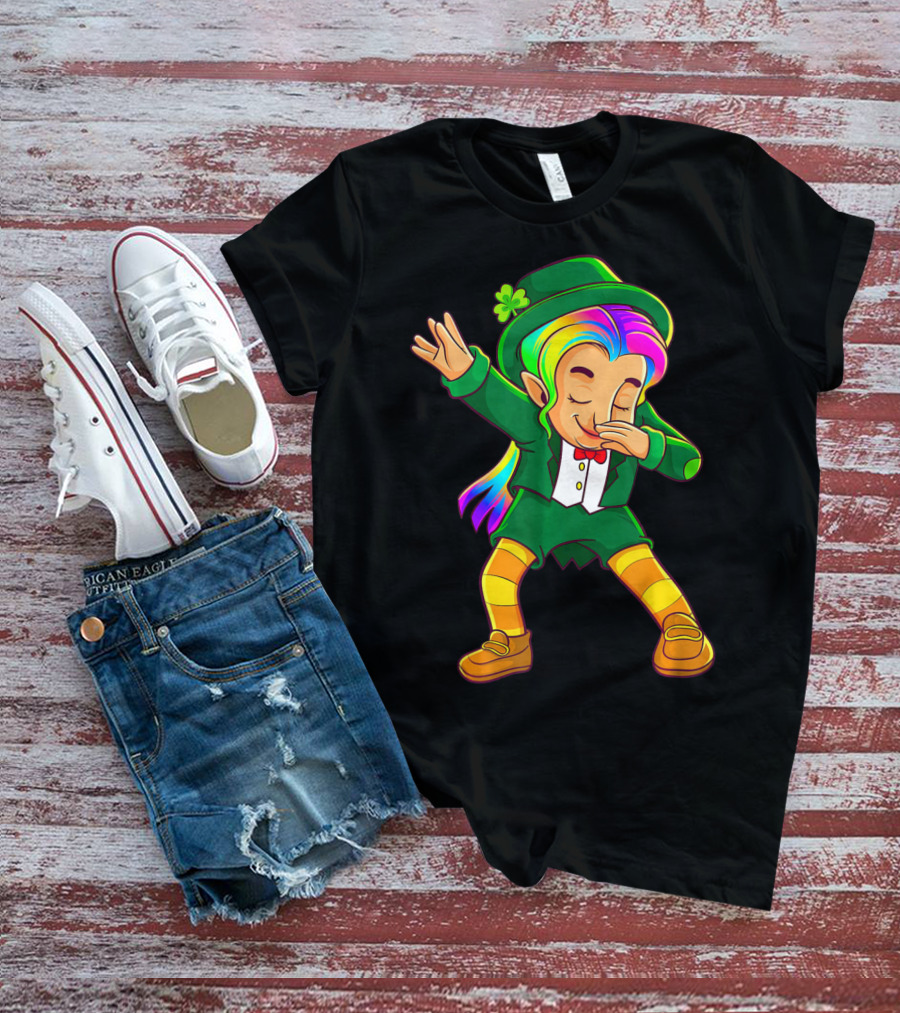 Dabbing Rainbow Leprechaun Girl St Patrick's Day T-Shirt