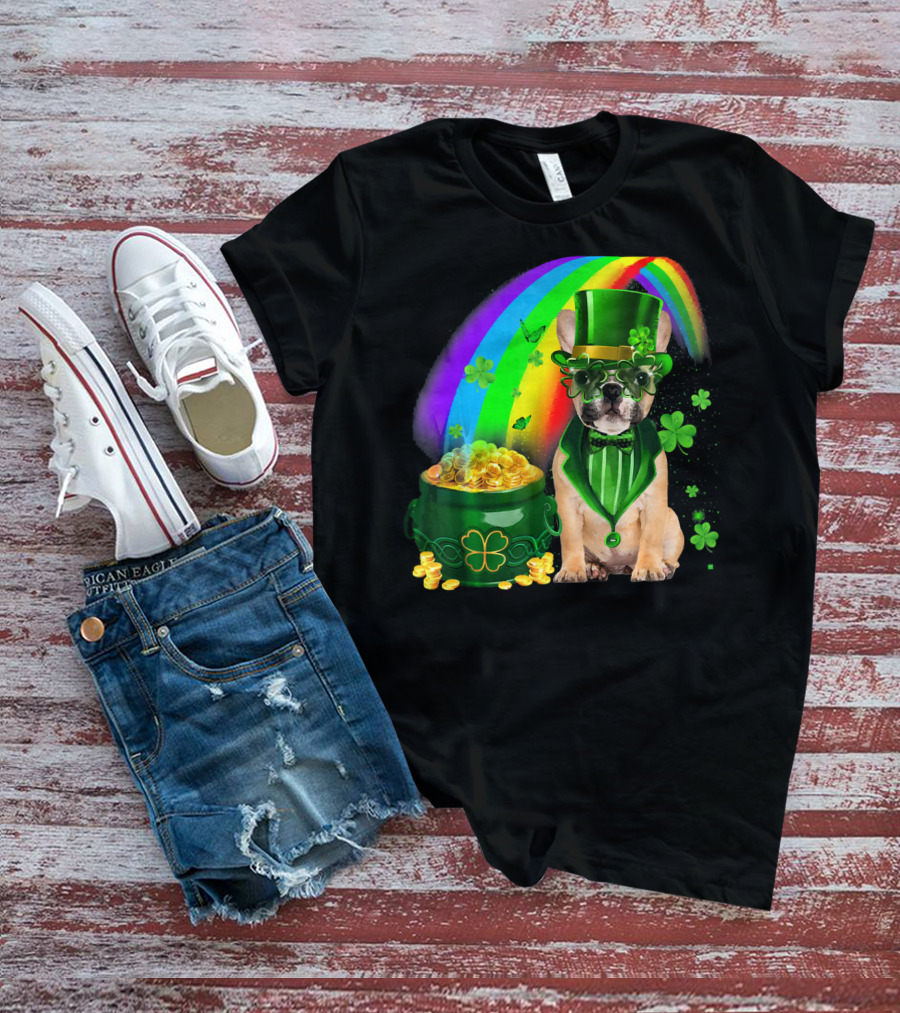French Bulldog Irish Leprechaun With Pot Of Gold And Shamrocks T-Shirt