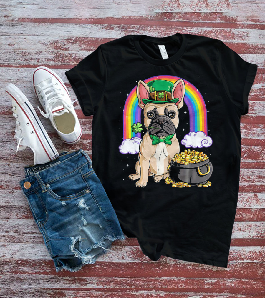 French Bulldog Leprechaun Rainbow Pot Of Gold T-Shirt