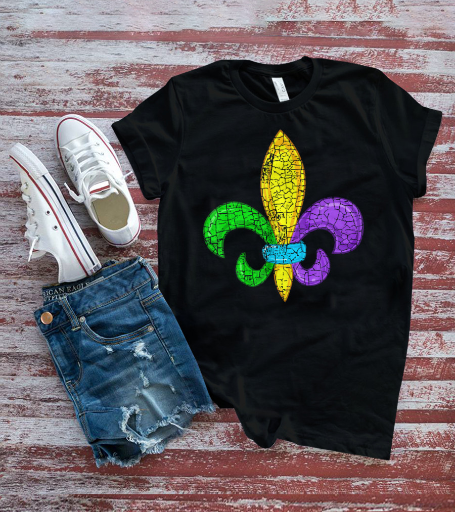 Fleur De Lis Mardi Gras Cute Fat Tuesday Cracked Texture T-Shirt