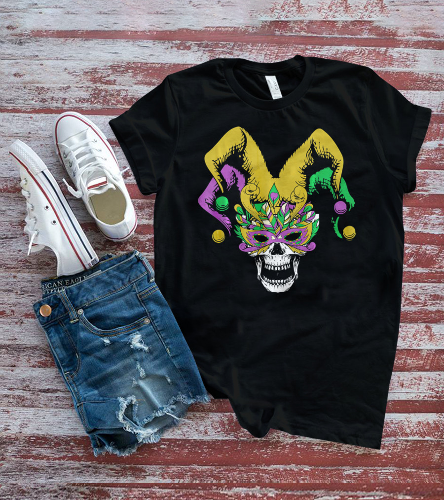 Mardi Gras Skull Jester Hat Masquerade Mask T-Shirt
