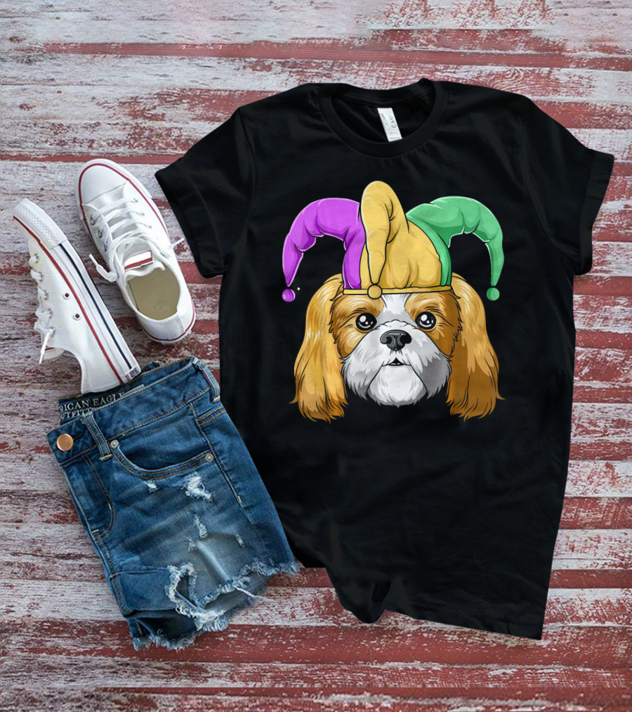 Mardi Gras Shih Tzu With Jester Carnival Hat T-Shirt