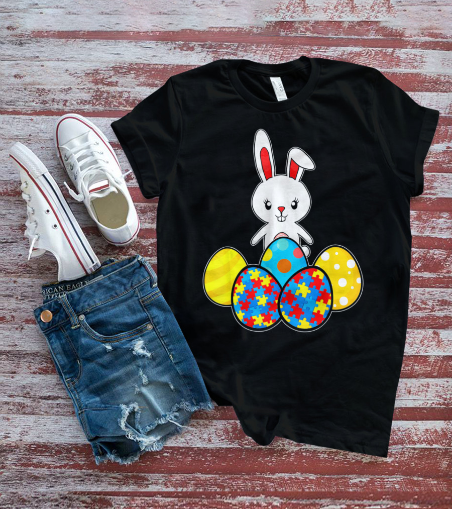 Easter Bunny With Autism Awareness Puzzle Pattern Eggs T-Shirt