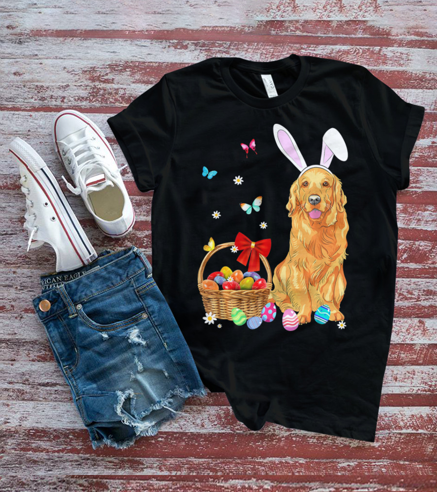 Golden Retriever Bunny Ears Easter Eggs Basket Butterflies T-Shirt
