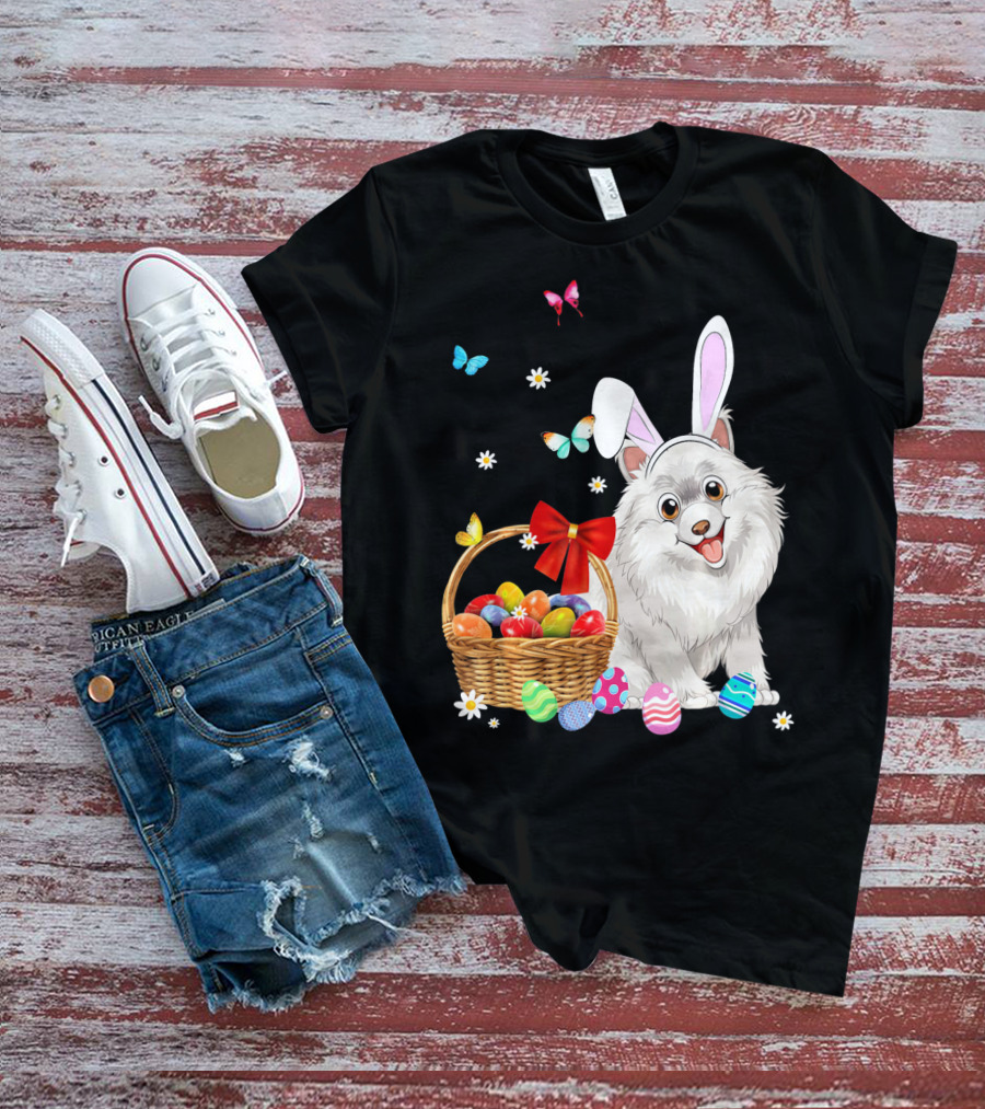Samoyed Bunny Ear Rabbit Easter Eggs Basket Butterflies T-Shirt
