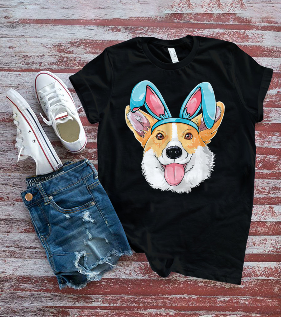 Easter Bunny Ears Corgi Dog T-Shirt