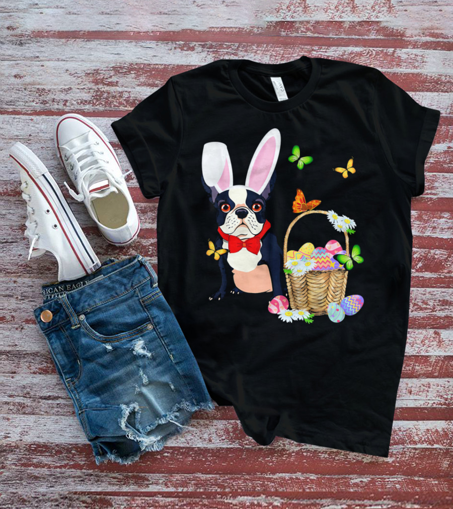 French Bulldog Bunny Hat Rabbit Easter Basket Eggs Butterflies T-Shirt