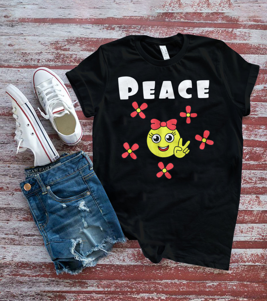 Peace Smiley Face With Flowers And Bow T-Shirt