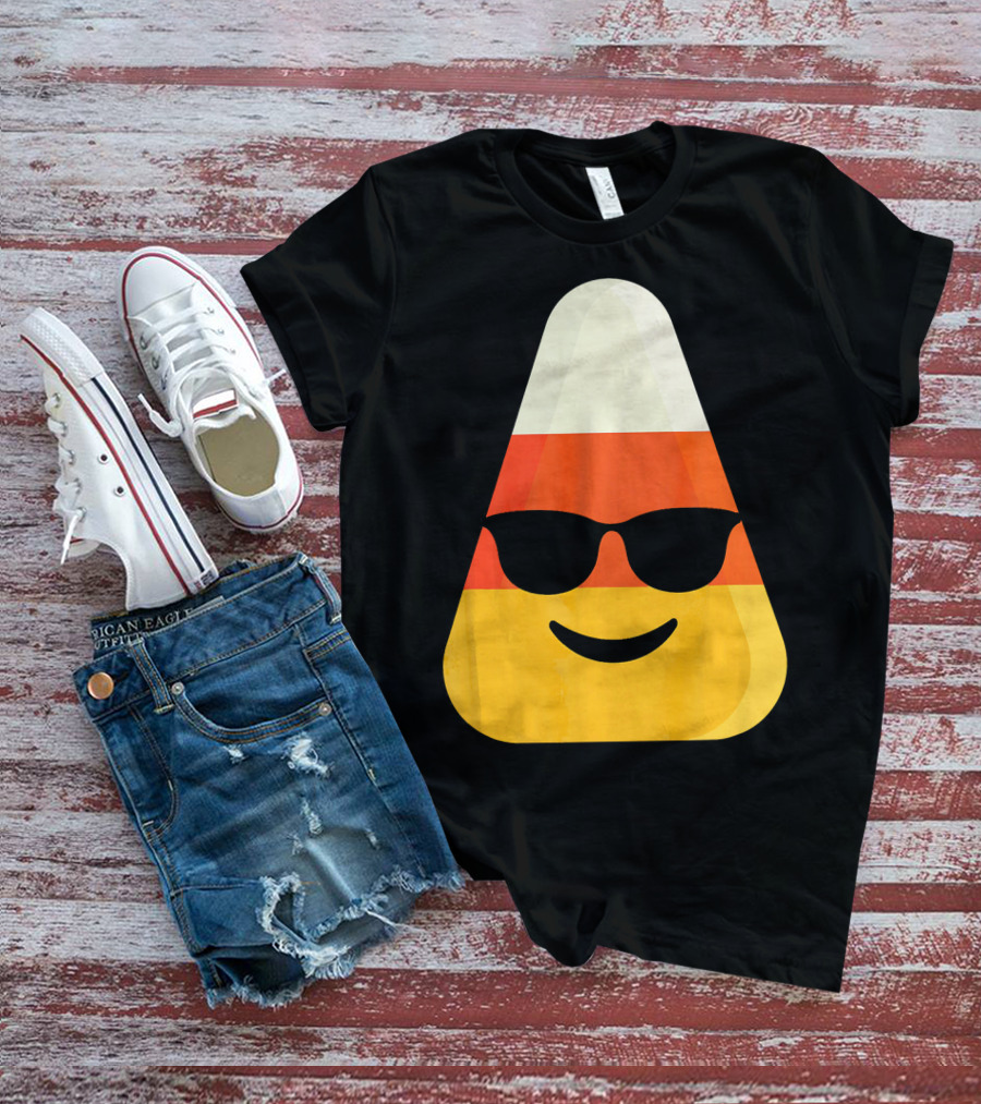 Candy Corn Emoji With Sunglasses Cool Shades T-Shirt