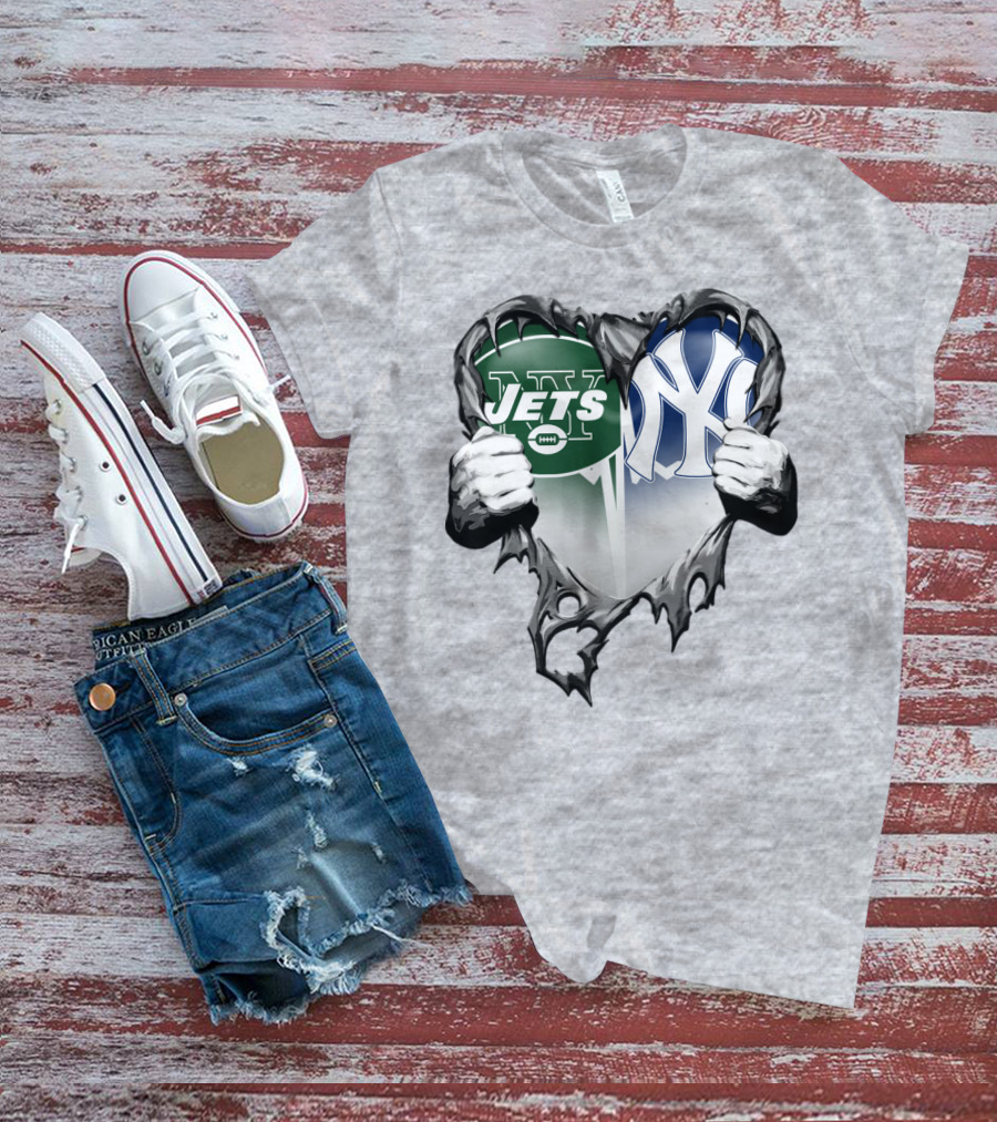 The Jets And Yankees Heart Tear Shirt offers a regular fit. Made from 100% ring-spun cotton that is pre-shrunk to help maintain size and shape after washing. Features reinforced construction details for durability. Available in U.S. standard sizes S-5XL to accommodate various body types.