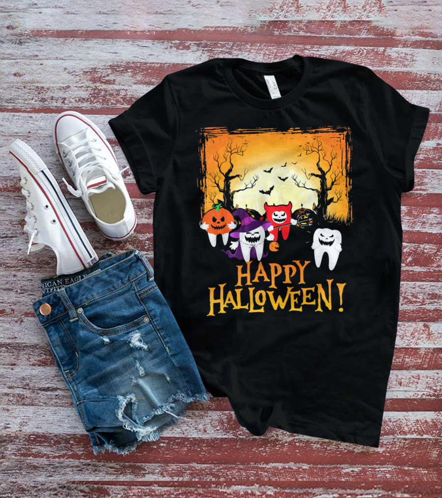 Happy Halloween Funny Teeth And Pumpkins T-Shirt