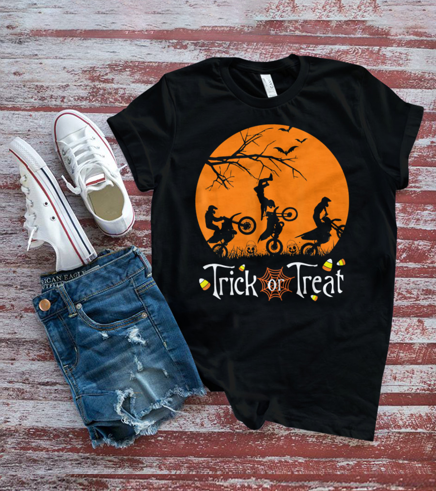 Motocross Halloween Trick Or Treat Moon Scene T-Shirt